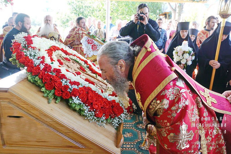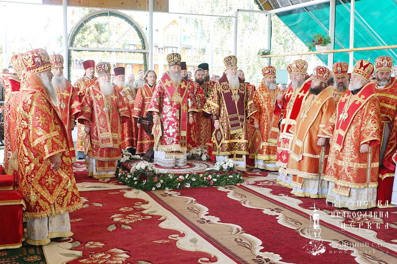 Его Блаженству сослужили: митрополит Хустский и Виноградовский Марк; митрополит Каменец-Подольский и Городокский Феодор; митрополит Могилев-Подольский и Шаргородский Агапит; архиепископ Черновицкий и Буковинский Мелетий; епископ Банченский Лонгин; епископ Конотопский и Глуховский Роман; епископ Ирпенский Климент; епископ Шепетовский и Славутский Евсевий; епископ Ивано-Франковский и Коломыйский Тихон; духовенство монастыря и гости обители в священном сане.