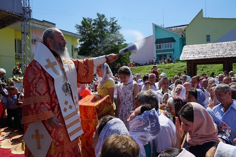 По окончании богослужения митрополит Онуфрий поздравил верующих с праздником и окропил собравшихся освященной водой.