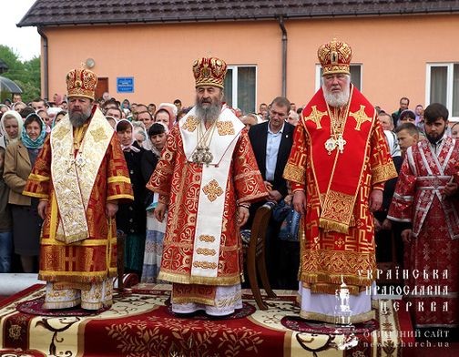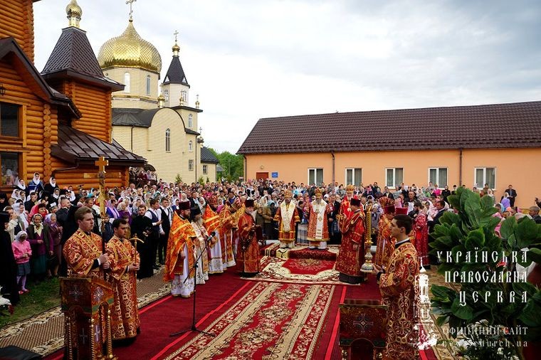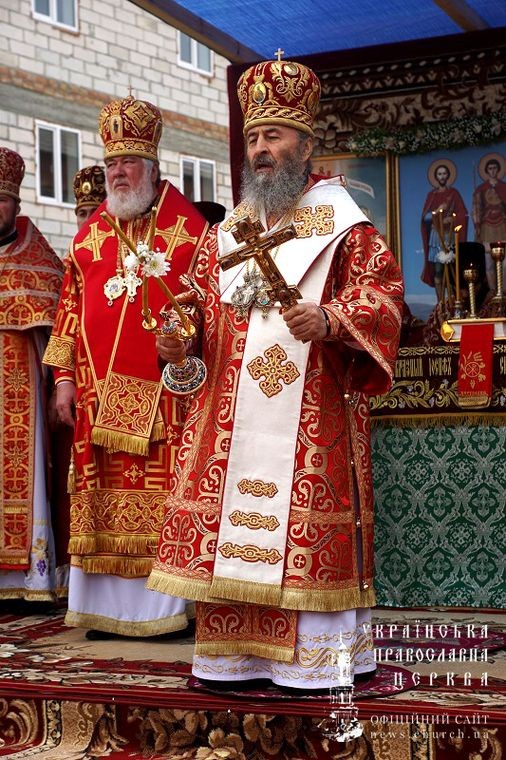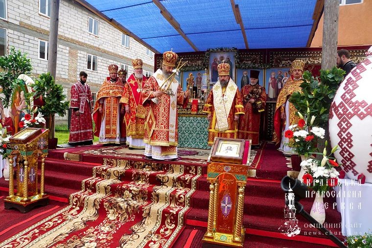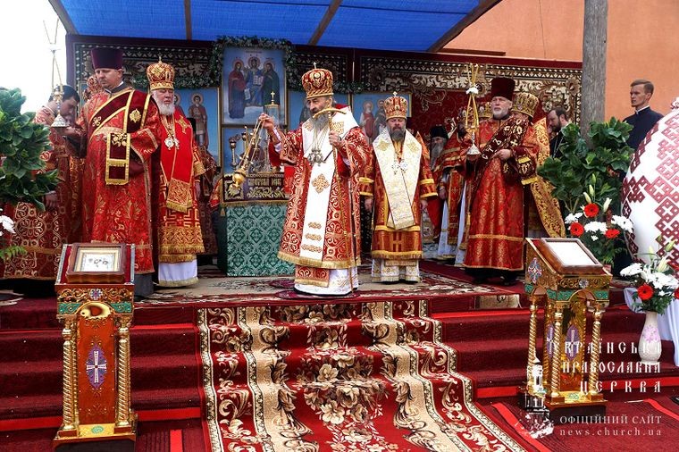 Предстоятель Украинской Православной Церкви в сослужении архиереев и духовенства совершил Божественную литургию на монастырской площади.
