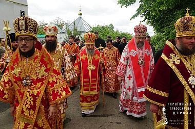 Его Блаженству сослужили: настоятель монастыря митрополит Полтавский и Миргородский Филипп; епископ Кременчугский и Лубенский Николай; епископ Золотоношский Иоанн; епископ Новосанжарский Вениамин; духовенство обители и епархии.