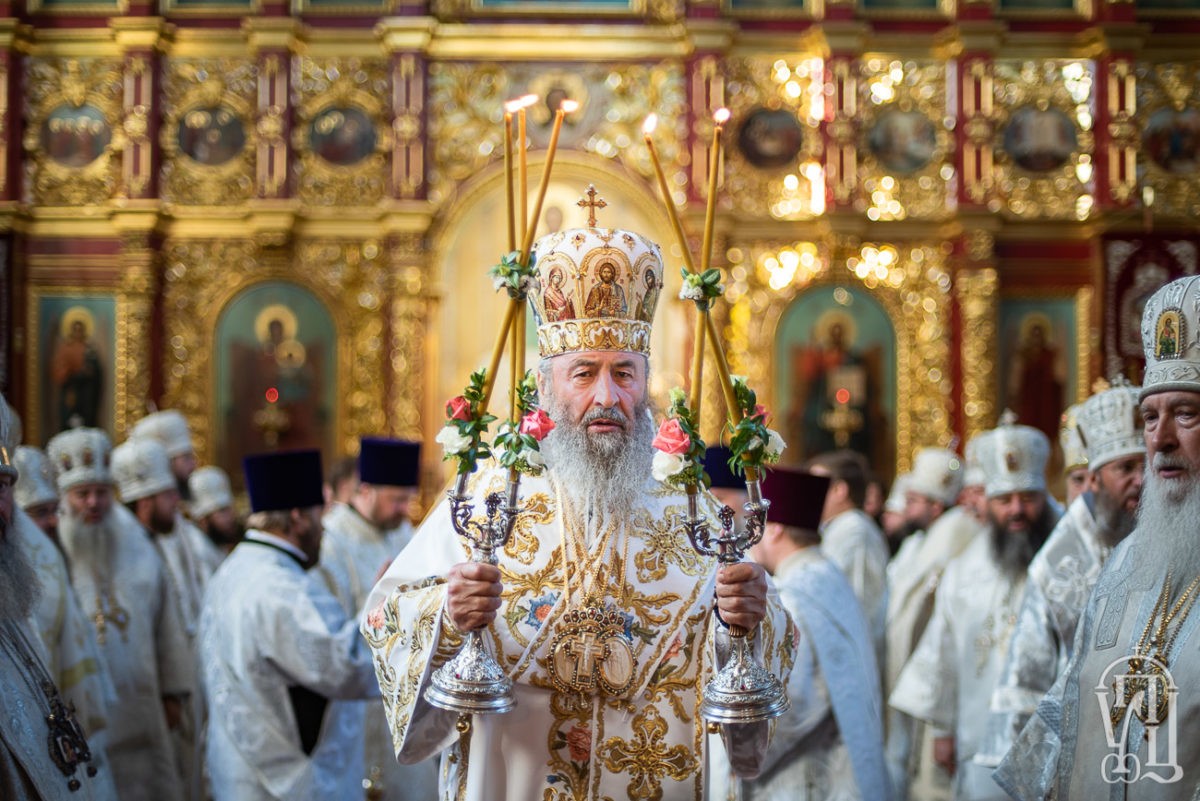За Литургией Его Блаженству сослужили председатель Церковного суда Украинской Православной Церкви митрополит Каменец-Подольский и Городокский Феодор, митрополит Вышгородский и Чернобыльский Павел, управляющий делами Украинской Православной Церкви митрополит Бориспольский и Броварской Антоний, митрополит Аккарский Василий (Антиохийская Православная Церковь), сонм архипастырей Украинской Православной Церкви, духовенство обители и гости в священном сане.