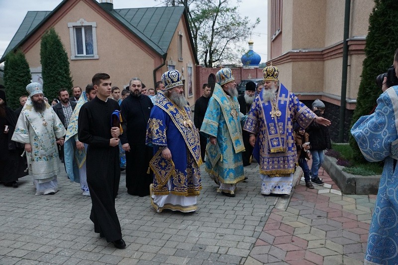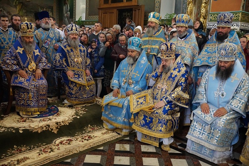 Его Блаженству сослужили митрополит Каменец-Подольский и Городокский Феодор, наместник Киево-Печерской лавры митрополит Вышгородский и Чернобыльский Павел, управляющий делами Украинской Православной Церкви митрополит Бориспольский и Броварской Антоний, митрополит Могилев-Подольский и Шаргородский Агапит, митрополит Черновицкий и Буковинский Мелетий, архиепископ Уманский и Звенигородский Пантелеимон, архиепископ Яготинский Серафим, архиепископ Банченский Лонгин, архиепископ Ирпенский Климент, епископ Шепетовский и Славутский Евсевий, епископ Ивано-Франковский и Коломыйский Тихон, епископ Золотоношский Иоанн, епископ Хотинский Вениамин, духовенство монастыря и Черновицко-Буковинской епархии, гости в священном сане.