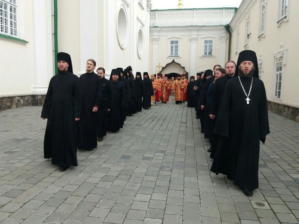 На малом входе Предстоятель Украинской Православной Церкви удостоил братию монастыря в священном сане богослужебных наград.