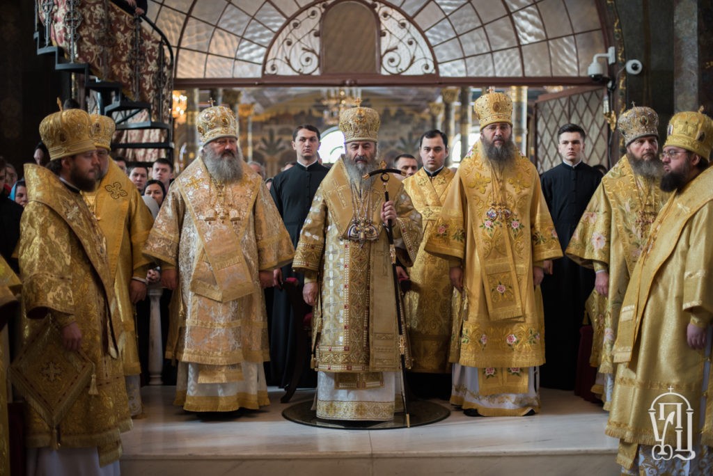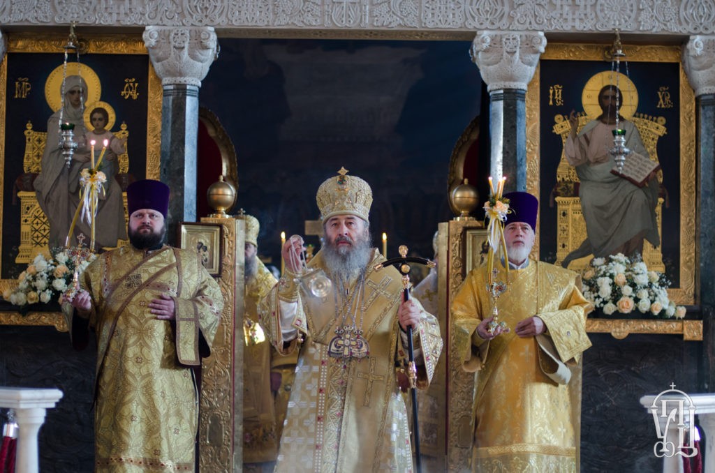 За Литургией Его Блаженству сослужили наместник обители митрополит Вышгородский и Чернобыльский Павел, управляющий делами Украинской Православной Церкви митрополит Бориспольский и Броварской Антоний, архиепископ Гурий (Кузьменко), архиепископ Бучанский Пантелеимон, епископ Барышевский Виктор, епископ Белогородский Сильвестр и духовенство Лавры.