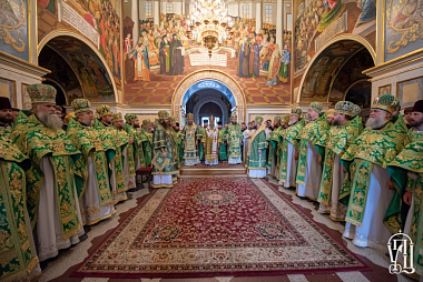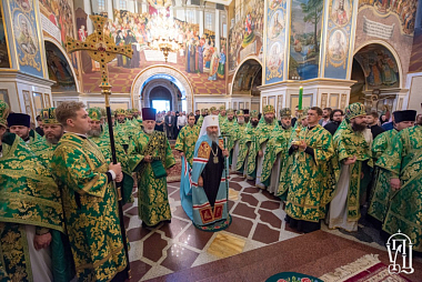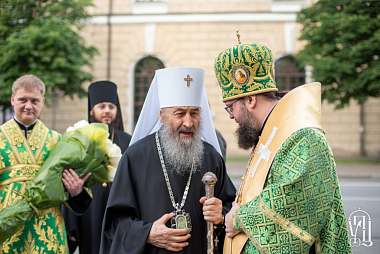 Накануне, в день Пятидесятницы, Блаженнейший митрополит Киевский и всея Украины Онуфрий принял участие в праздничном богослужении в Свято-Троицкой Сергиевой лавре.