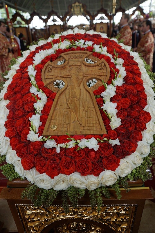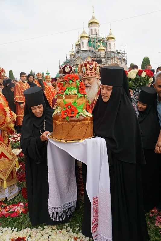 Я всех поздравляю со святым Успенским постом. Желаю сестрам святой обители и игумении Августе, всем священникам, которые здесь служат, всем паломникам, которые сюда пришли, Божиего благословения. Чтобы молитвами святых мучеников Маккавеев и силой Честного Животворящего Креста Господь нас хранил в добром здравии и благочестии. С праздником всех!»