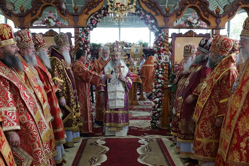 За Литургией Его Блаженству сослужили митрополит Хустский и Виноградовский Марк, митрополит Каменец-Подольский и Городокский Феодор, митрополит Вышгородский и Чернобыльский Павел, митрополит Тернопольский и Кременецкий Сергий, митрополит Могилев-Подольский и Шаргородский Агапит, митрополит Черновицкий и Буковинский Мелетий, архиепископ Ивано-Франковский и Коломыйский Серафим, архиепископ Банченский Лонгин, архиепископ Нежинский и Прилукский Климент, архиепископ Винницкий и Барский Варсонофий, епископ Шепетовский и Славутский Евсевий, епископ Хотинский Вениамин, гости праздника в священном сане и духовенство обители.