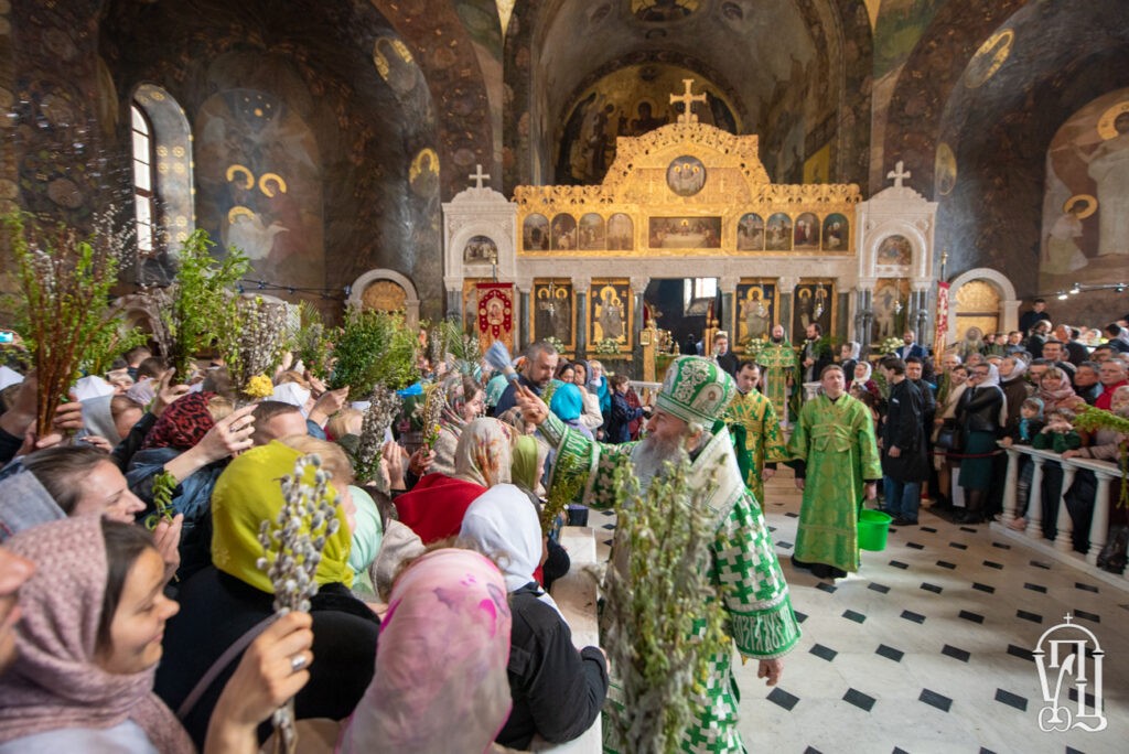 В завершение митрополит Онуфрий освятил ветви и окропил освященной водой многочисленных верующих, молившихся за праздничным богослужением.