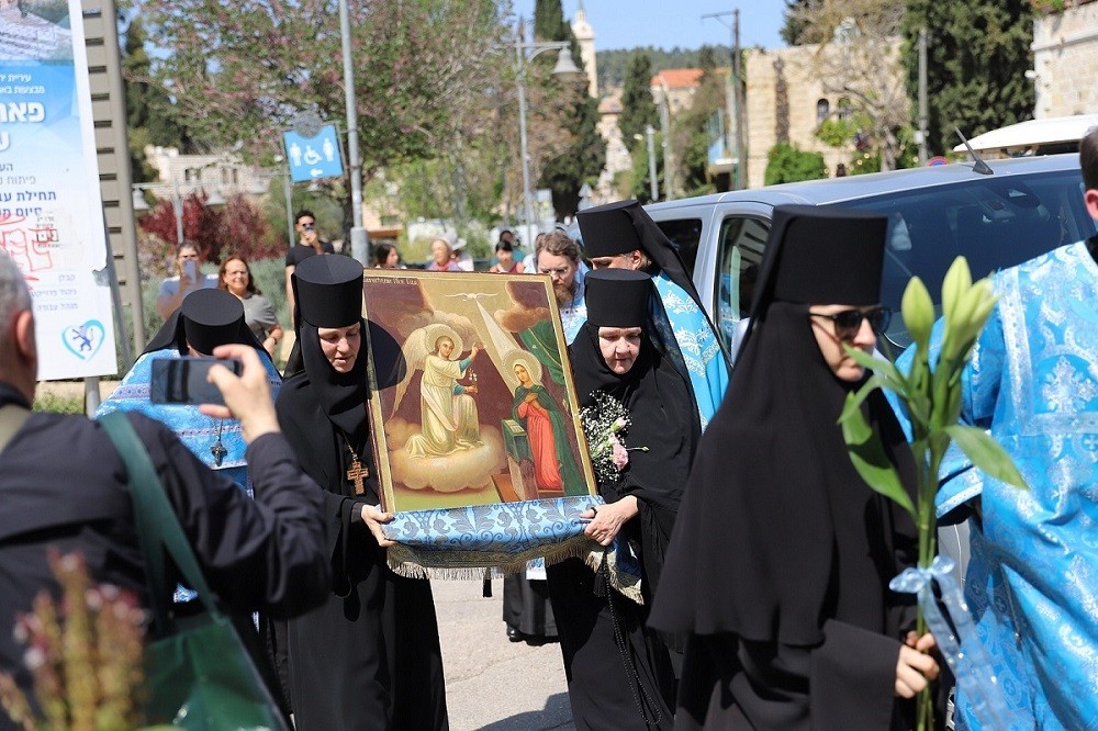 12 апреля 2024 года, в пятницу Крестопоклонной седмицы Великого поста, чтимый образ Благовещения Пресвятой Богородицы, находящийся в Троицком соборе Иерусалима, был торжественно перенесен в Горненский женский монастырь в Эйн-Кареме.