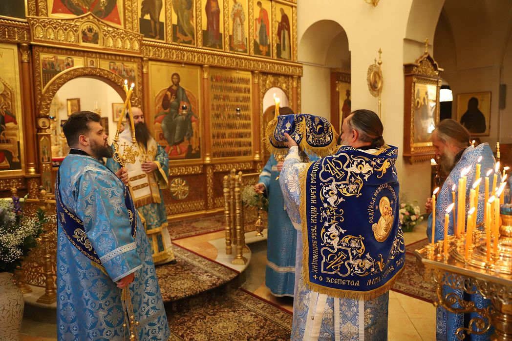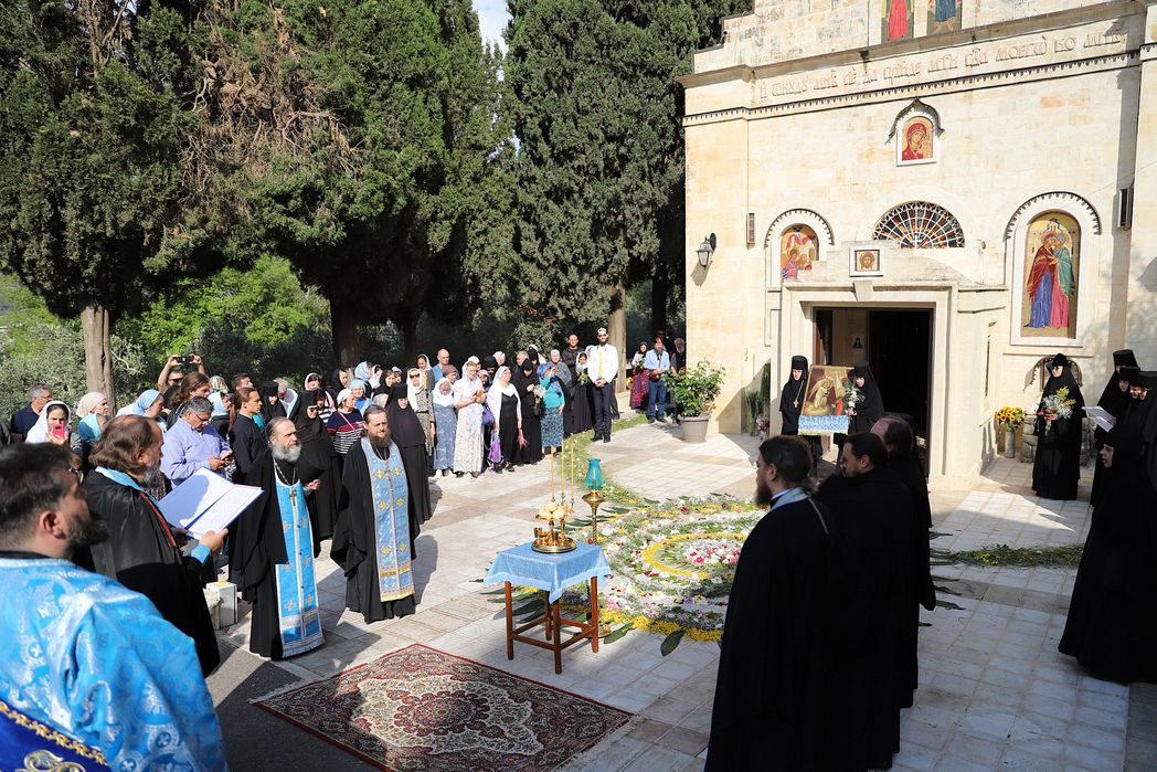 По благословению Блаженнейшего Патриарха Иерусалимского и всей Палестины Феофила III архиепископ Герасский Феофан возглавил в Троицком соборе предначинательный молебен праздника и крестный ход из Иерусалима к источнику Пресвятой Девы в Эйн-Кареме.