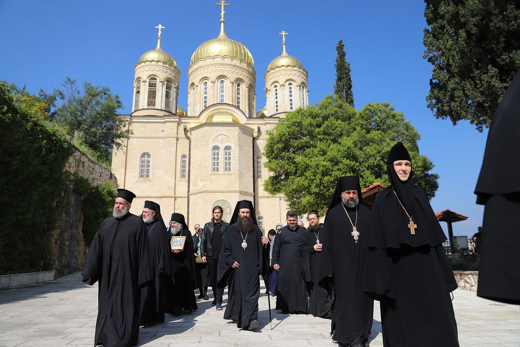 13 апреля по благословению Предстоятеля Иерусалимской Православной Церкви торжественное богослужение в соборе Всех святых Церкви Русской в Горненском женском монастыре возглавил архиепископ Иерапольский Исидор.