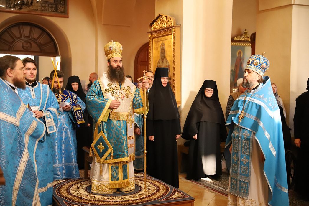 На литии духовенство, сестры и паломники обители совершили крестный ход вокруг Казанского храма; вслед за вечерней началась утреня.