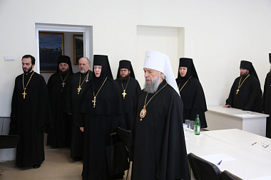 В главном духовном учебном заведении Мордовии прошло совещание членов делегации с ректором семинарии митрополитом Саранским и Мордовским Зиновием.