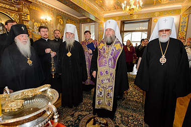 По сложившейся традиции у гробницы старца-святителя митрополита Иосифа (Чернова) иерархи, священнослужители и верующие пропели «Вечную память».