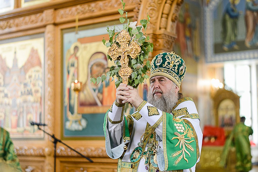 По окончании Литургии митрополит Александр возглавил великую вечерню праздника Пятидесятницы с чтением коленопреклонных молитв.