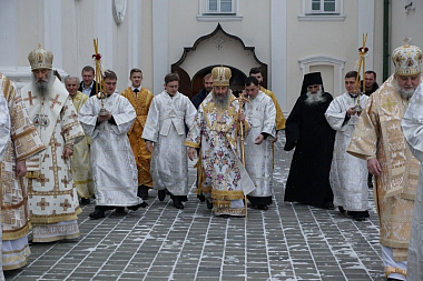 Его Блаженству сослужили митрополит Тернопольский и Кременецкий Сергий, наместник обители митрополит Почаевский Владимир, ректор Почаевской духовной семинарии епископ Шумский Серафим, духовенство монастыря и гости в священном сане.