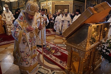 Блаженнейший владыка, в свою очередь, поздравил наместника Лавры, братию и всех верующих с праздником и благословил паству.