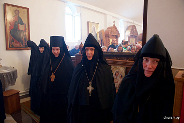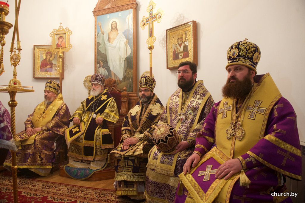Его Высокопреосвященству сослужили: архиепископ Белостокский и Гданьский Иаков (Польская Православная Церковь); председатель Синодального отдела по делам монастырей и монашеству Белорусского Экзархата епископ Лидский и Сморгонский Порфирий; епископ Гомельский и Жлобинский Стефан; епископ Бобруйский и Быховский Серафим; епископ Борисовский и Марьиногорский Вениамин; епископ Слуцкий и Солигорский Антоний; духовенство Слуцкой епархии.