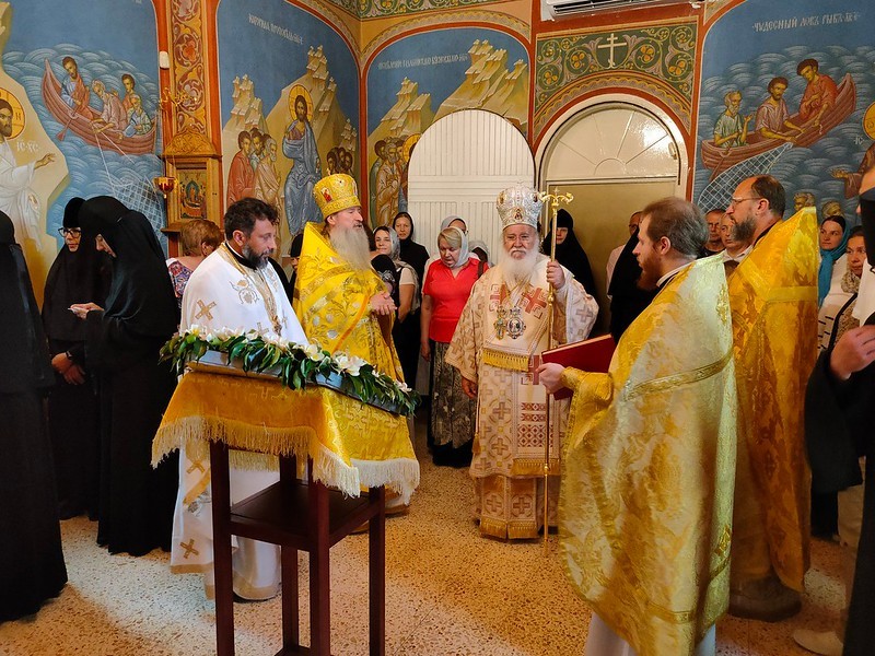 За богослужением, которое было совершено на церковно-славянском, греческом и арабском языках, пел хор сестер Горненской обители.