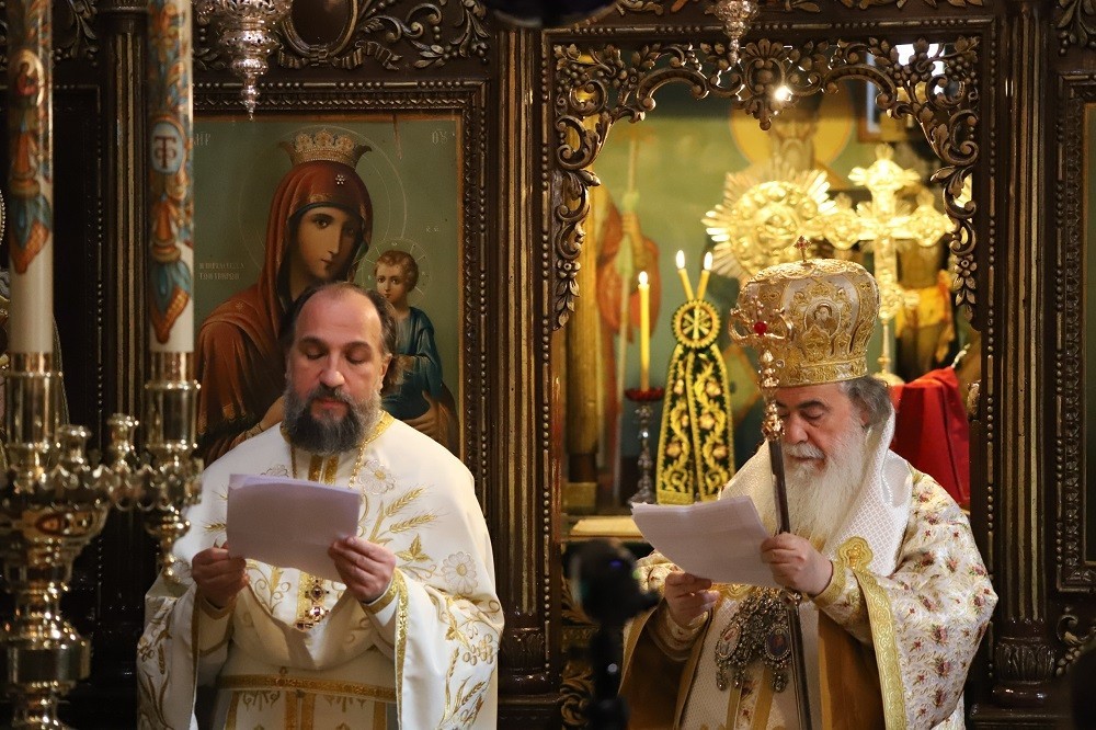 Его Блаженству сослужили митрополит Назаретский Кириак, генеральный секретарь Иерусалимской Патриархии архиепископ Константинский Аристарх, архиепископ Фаворский Мефодий, духовенство Святогробского братства и русские паломники в священном сане.