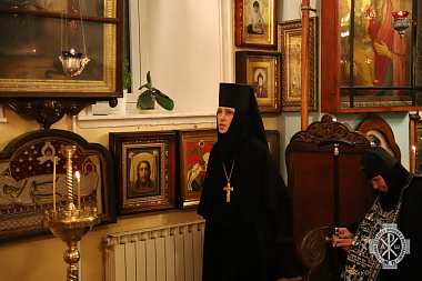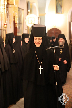 Прибывшую настоятельницу приветствовали начальник Русской духовной миссии в Иерусалиме архимандрит Александр (Елисов), а также духовенство миссии и Горненской обители: протоиерей Виктор Мноян, игумен Никон (Головко), иеромонах Иннокентий (Беспалов), иеромонах Дометиан (Маркарян), иеромонах Афанасий (Букин) и диакон Илия Драчук.