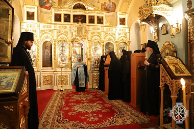 Далее старший священник Горненского женского монастыря протоиерей Виктор Мноян совершил благодарственный молебен, после которого к новой настоятельнице с приветственным словом обратился начальник Русской духовной миссии архимандрит Александр.