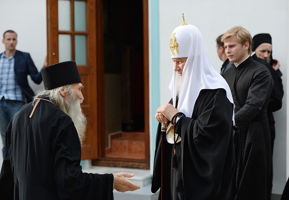 После богослужения Предстоятель Русской Православной Церкви разделил трапезу с братией обители.