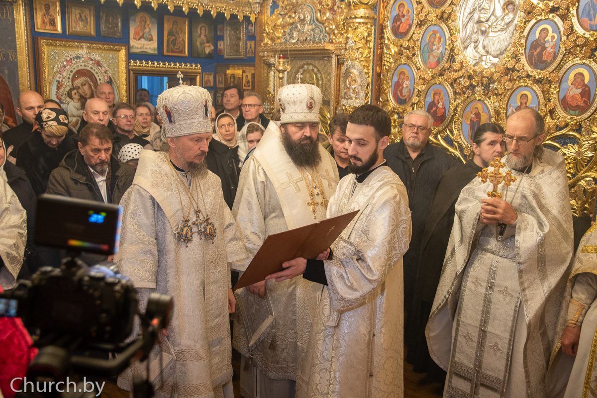 Его Высокопреосвященству сослужили епископ Борисовский и Марьиногорский Амвросий, секретарь Борисовской епархии протоиерей Сергий Башкиров, настоятель обители игумен Лавр (Будич), председатель Наградной комиссии Белорусского экзархата иерей Дионисий Ковалев, братия Ляденской обители в священном сане.
