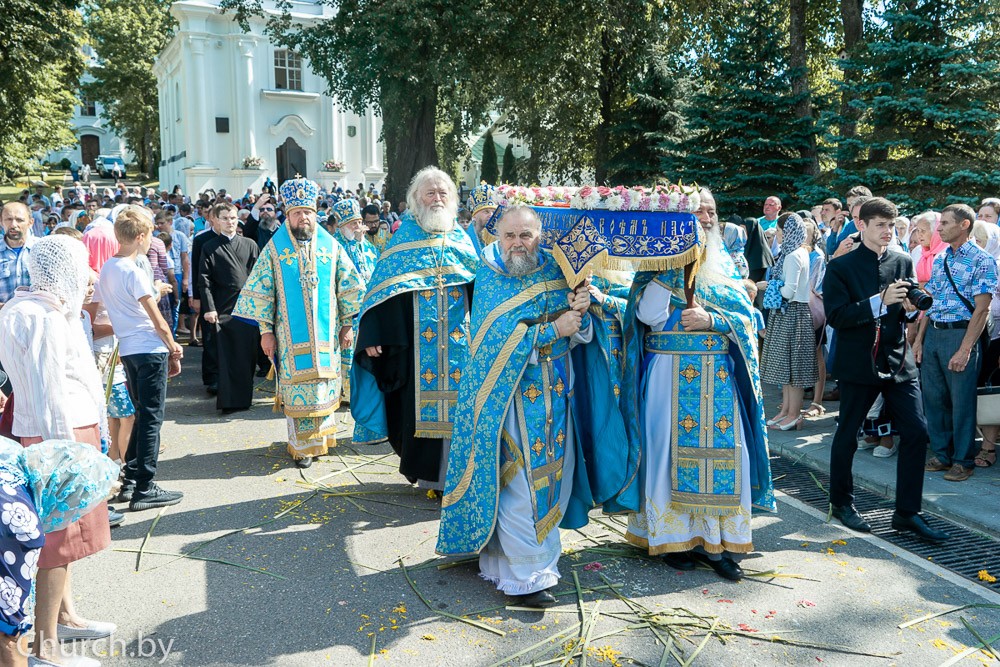 По окончании Литургии от Успенского собора был совершен крестный ход с плащаницей Божией Матери к храму Рождества Пресвятой Богородицы, именуемому Явленским, воздвигнутому на месте второго чудесного обретения Жировичской иконы Пресвятой Богородицы. Перед Явленским храмом был отслужен молебен с чтением акафиста Успению Пресвятой Богородицы.