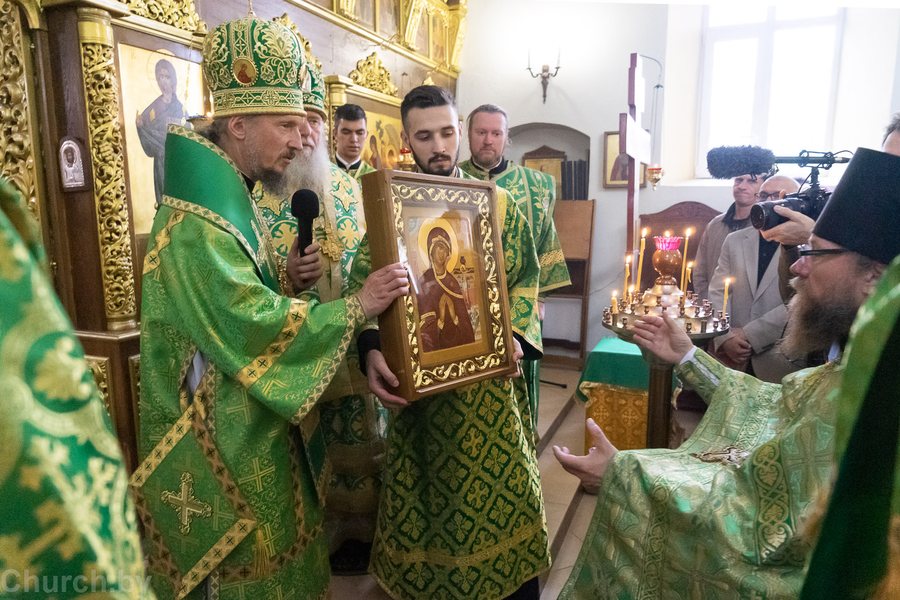 Митрополит Вениамин произнес слово назидания. В дар древнему монастырю была преподнесена икона Пресвятой Богородицы.