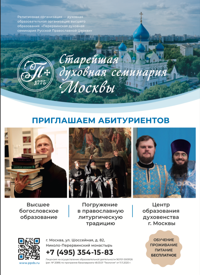 Перервинская духовная семинария является высшим духовным учебным заведением Московской епархии Русской Православной Церкви, реализующим аккредитованные государственные (48.03.01 Теология) и церковные образовательные программы, направленные на подготовку священнослужителей.