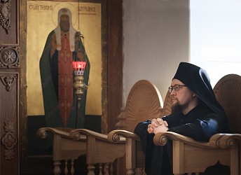 По прибытии в храм митрополит Феогност поклонился честным мощам преподобного Аристоклия, старца Афонского и Московского.