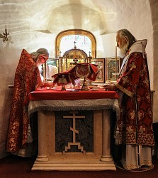 По окончании Литургии было совершено славление преподобным отцам Русского на Афоне Пантелеимонова монастыря.