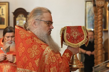 За Литургией Его Высокопреосвященству сослужили и.о. настоятеля московского подворья Русского Пантелеимонова монастыря на Афоне иеромонах Никита (Смернягин) с братией подворья.
