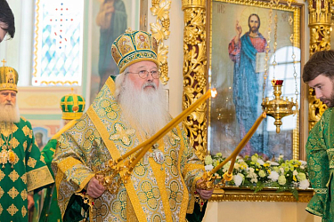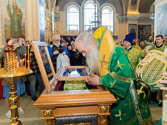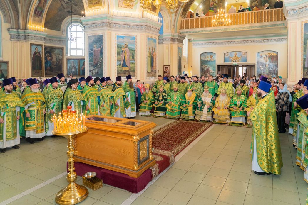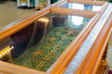 Особую торжественность моменту придало то, что накануне вечером в Барнаул из Орла на автотранспорте прибыла рака с мощами преподобного Макария, апостола Алтайского, основателя Алтайской духовной миссии.