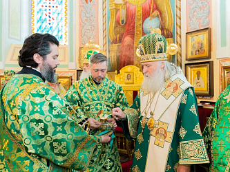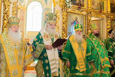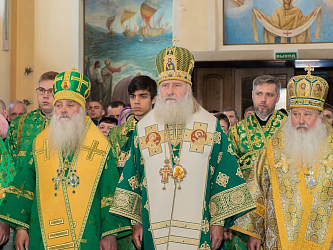 Владыкам сослужили: секретарь Барнаульской епархии архимандрит Иларион (Морозов), секретарь Рубцовской епархии протоиерей Михаил Кизюн, руководитель Отдела образования Новосибирской митрополии протоиерей Борис Пивоваров, секретарь Архирейского совета Алтайской митрополии протоиерей Андрей Басов, благочинные церковных округов, первый проректор Барнаульской духовной семинарии протоиерей Георгий Крейдун, преподаватели Барнаульской духовной семинарии в священном сане и клирики епархий, входящих в состав Алтайской митрополии.