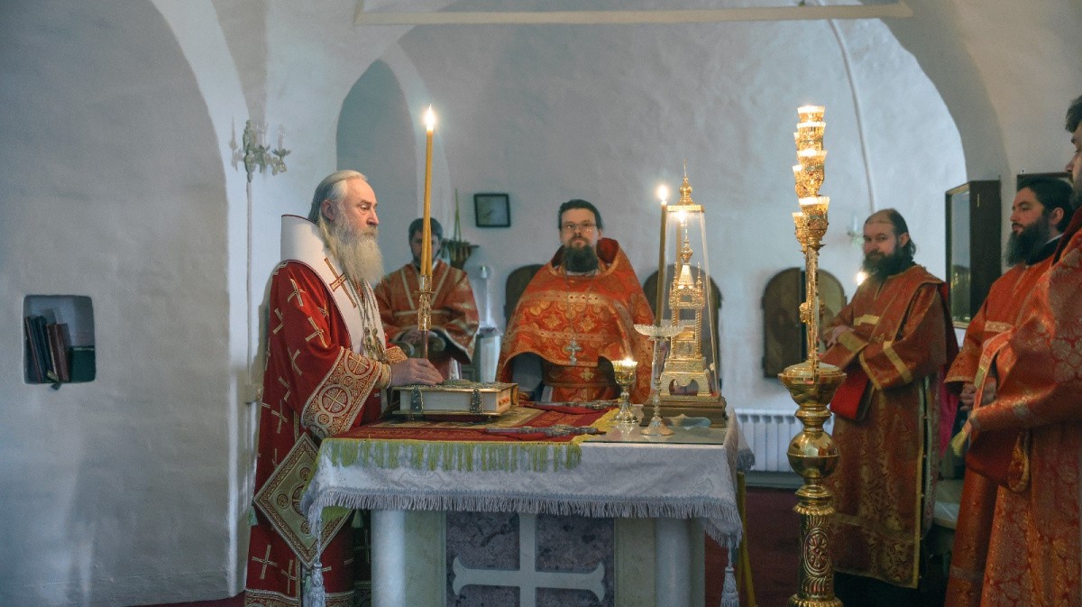 По окончании Литургии митрополит Феогност поклонился честным мощам преподобного Аристоклия, старца Афонского и Московского.