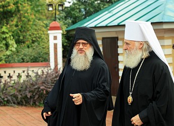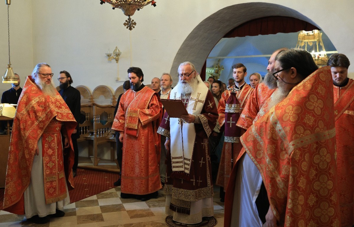 За Божественной литургией Его Высокопреосвященству сослужили и.о. настоятеля московского подворья Русского на Афоне Пантелеимонова монастыря иеромонах Никита (Смернягин), клирики подворья в священном сане.