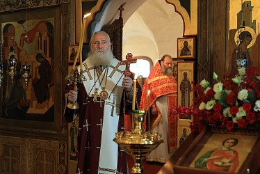 По окончании Литургии митрополит Феогност совершил славление и чтение молитвы перед иконой святого целителя.