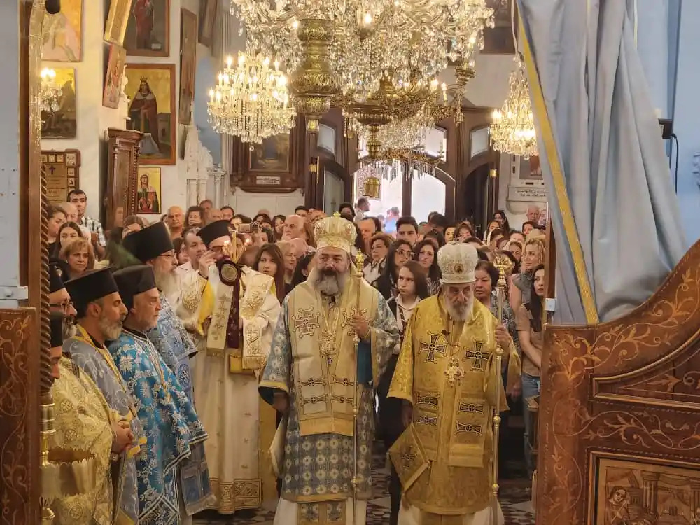 За Божественной литургией молились и причащались Святых Христовых Таин епископы Иерапольский Арсений, Сергиопольский Иоанн и Ларисский Моисей, игумения монастыря матушка Феврония (Набхан).