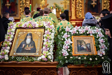 Его Блаженству сослужили управляющий делами Украинской Православной Церкви митрополит Бориспольский и Броварской Антоний, архиепископ Яготинский Серафим, архиепископ Фастовский Дамиан, епископ Белогородский Сильвестр и духовенство обители.