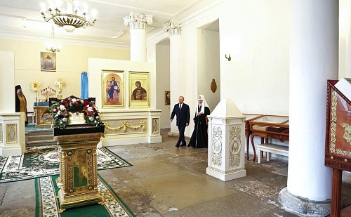 Главу государства сопровождал Святейший Патриарх Московский и всея Руси Кирилл.