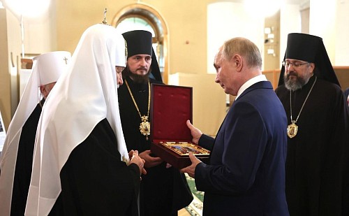 Затем состоялась беседа В.В. Путина со Святейшим Патриархом Кириллом, стенограмма которой опубликована сайте Президента России.