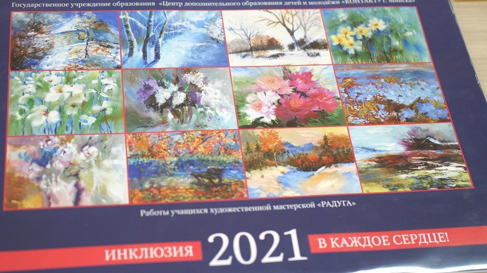 30 января 2021 года в Центре дополнительного образования детей и молодёжи «Контакт» города Минска состоялась презентация перекидного календаря на 2021 год с иллюстрациями, созданными воспитанниками инклюзивного объединения по интересам «Художественная мастерская "Радуга"».