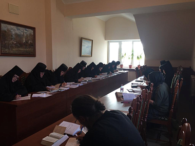 Рабочая выездная аккредитационная комиссия провела зачет по Четвероевангелию для слушательниц курсов из Введенского женского монастыря г. Иванова и Никольского женского монастыря г. Приволжска в зале Ученого совета семинарии.