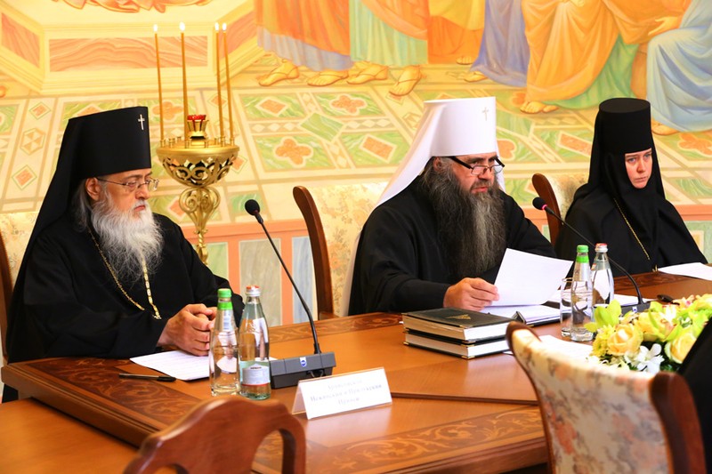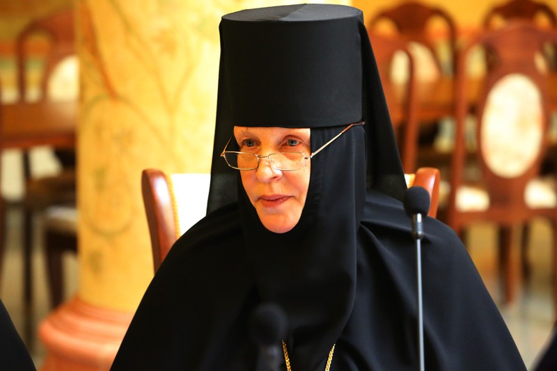 Кроме того, выступили руководитель рабочей группы по разработке юридических аспектов поступления в монастырь и выхода из него настоятельница Воскресенского Новодевичьего монастыря Санкт-Петербурга игумения София (Силина) и руководитель рабочей группы по разработке вопросов практик откровения помыслов в монастырях настоятельница Зачатьевского ставропигиального монастыря Москвы, Заместитель Председателя Синодального отдела по монастырям и монашеству игумения Иулиания (Каледа).