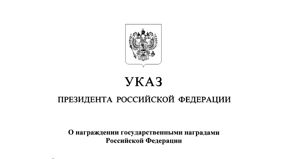 Президентский указ о наградах опубликован на официальном интернет-портале правовой информации.