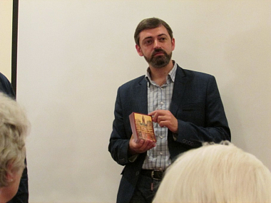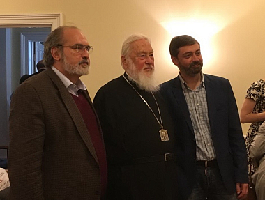 По окончании вечера Сергей Шумило всем присутствующим подарил иконки всех Святогорских преподобных, а также передал в дар для библиотеки православного центра в Оксфорде книги о наследии Афона.