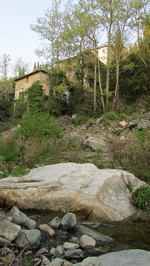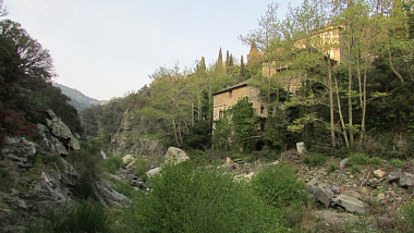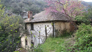 Знаменитый «храм на жерновах» находится на склоне большого ущелья, на старой монастырской мельнице, что в расстоянии около двух километров от обители. Сама мельница представляет собой комплекс из четырех зданий, выстроенных каскадом. В этих корпусах жили и трудились братия обители, несшие послушание на мельнице. В нижнем этаже каждого здания находятся массивные жернова, которые приводились в движение водяным колесом, расположенным с тыльной стороны дома. Вода подавалась на лопасти колес из специально устроенного выше каскада бассейна, в котором она накапливалась из подземных источников. Верхние этажи были приспособлены под келлии.