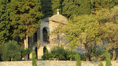 В этом храме расположена гробница, где по древней афонской традиции находится костница с многочисленными главами подвижников русской святогорской обители.